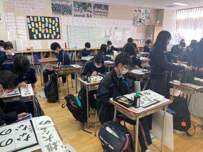 授業では書道を頑張り、放課後は三者面談ごっこをしていました。