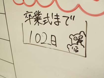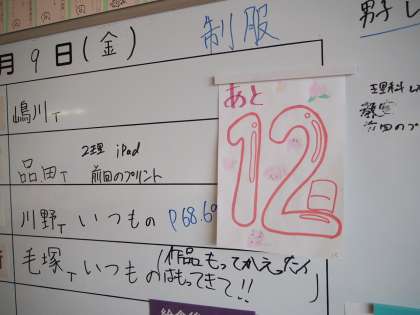 今朝も澄み渡るフナキボの東の空です。それぞれの学年の教室にはカウントダウンの表示。んっ!早くも11期生は卒業までのカウントダウンが始まっている?