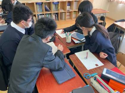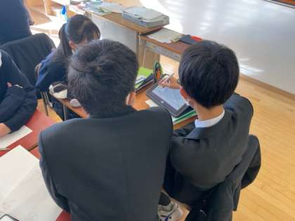 数人の数学者の三平方の定理の証明について一人一人が考え、班でそれを共有しています。