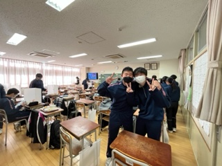 黙食の見直しも、叫ばれている昨今ですが、保健給食委員会では静かに準備をしようと取り組みを始めました。みんなで協力して静かに素早く準備ができるといいですね。写真を撮っていたら、元気にポーズをとってくれた三年生です。(大橋)