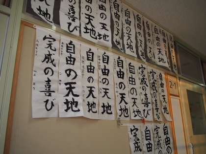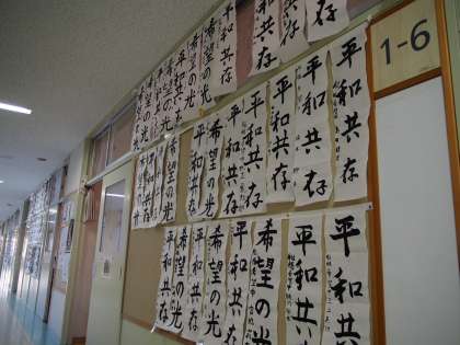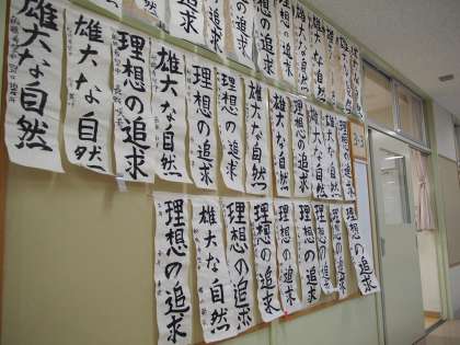 各学年の廊下には、書き初めが展示してあります。新年の決意の現れがそれぞれ文字の形となってあられわているようです。
