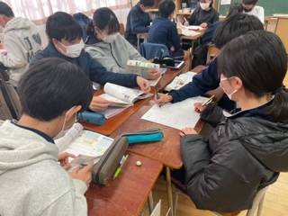 今日の五時間目は学級レク兼公民の復習で公民ビンゴ大会(景品付き)を行いました!