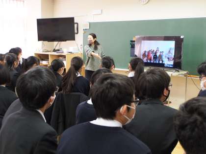 昨日に引き続き、今日は11期生6組で保育園児とのオンライン交流会を行いました。誕生日の月ごとの自己紹介から始まり、「むーすうんで〜ひーら〜い〜て〜♪」を振付で歌い、「教室から赤色のものを探して紹介しよう」コーナー、質問タイムなども盛り沢山のプログラムです。