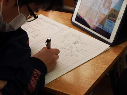 13期生の社会科は歴史の院政を学んでいます。タブレットにも送られてくる分かりやすい解説画像だけでなく、一生懸命に取り組んでいるノートにも注目。デジタル+アナログです。