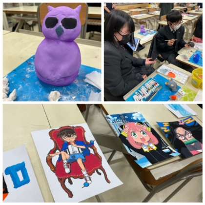 いよいよ今週展示発表会が始まります。2学期からコツコツと制作を続けてきた美術部。平面作品も立体作品も共同制作もあります。