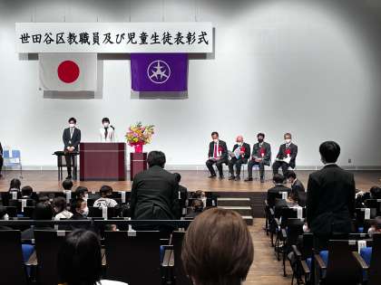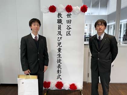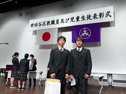今年度、陸上競技部は男子のリレーで東京都大会2位に入賞した実績が認められ、世田谷区から表彰していただきました。