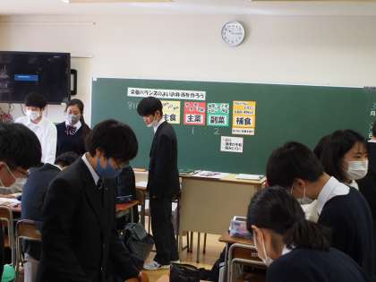 11期生が栄養士さんの指導のもと栄養バランスの取れたお弁当目メニューを考えています。進学先はお弁当持参、という所もあるかもしれません。自分の手作り弁当をもっていけたら最高ですね。