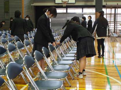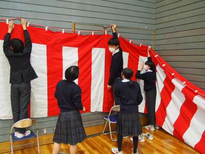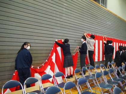 紅白幕や椅子の揃え方まで入念に準備を進めています。