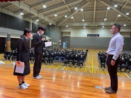最後の学年集会では生徒たちからのサプライズをしてもらいました。笑いあり涙ありの幸せな時間でした。