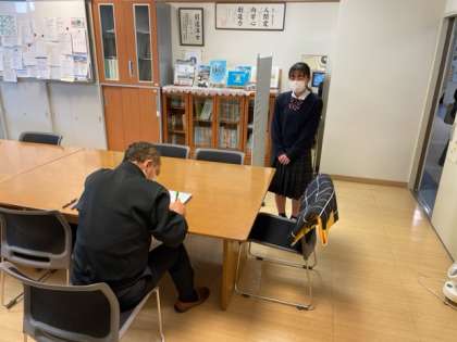 卒業アルバムに校長先生からの言葉をもらおうとしているそうです。