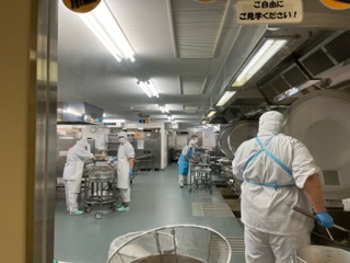 今日は令和4何度?最後の給食です。給食室も準備中です。今日はエビフライ。給食でエビフライが食べられるなんて、幸せです。今日も味わって、食缶を全部空っぽにしよう。