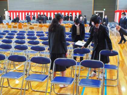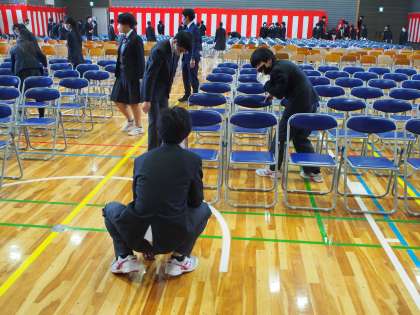 保護者と新入生が座る椅子を寸分違わずピシッと並べる職人さんのような12期生。こういう生徒がいることも頼もしい限りです。