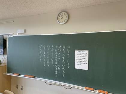 朝廊下を回ると、新しく今年からフナキボに来られた先生から3年生へメッセージが!3 good things、いいですね!