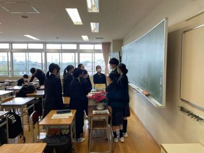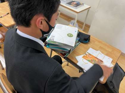今日の一年生は教科書配布や学級開きを行いました。5組の休み時間をのぞくと担任の先生に話しかけるたくさんの生徒たちがいました。