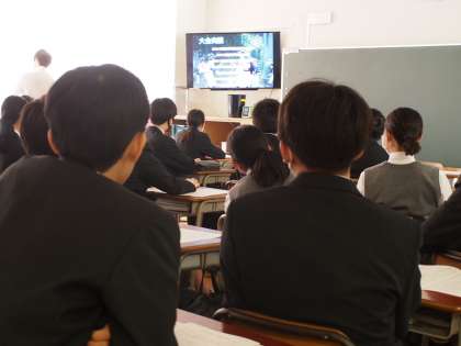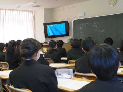 コロナ禍で変わったもののひとつがこの部活動紹介。以前は全校生徒が体育館に入り、目の前のパフォーマンスと説明を見ながら「どの部活動に入ろうか…」と思いを募らせていましたが、今は完全動画による説明になりました。それでもフナキボ生は真剣に参加しています。部活動によりますが、こちらの方がわかりやすい、との評価もあり、今後はこの形式になるかもしれませんね。