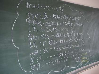 今日から本格的な授業がスタート。どんな中学校生活になるのかなあ。