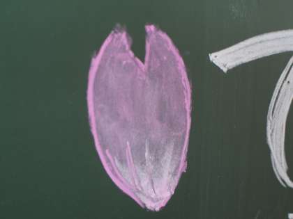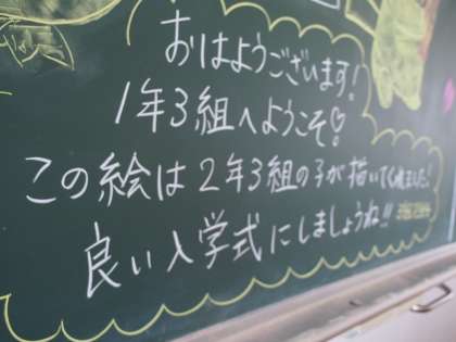 どのクラスのメッセージも素敵で、しかもイラストがものすごくきめ細かく描かれていました。花びらひとつとってもよくチョークでこれだけきめ細かく描けるなあ、と関心するほどです。【菅野】