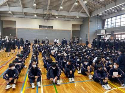 朝、朝礼に向かうと学級委員の指示のもと、生徒たちだけできちんと整列し、待機できていました。すごい!
