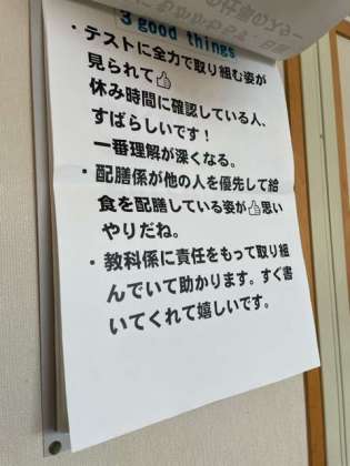 3-5に公民の授業にいきました。「なぜ社会を学ぶのか」について話をしました。みんなよく聞き、反応していました。素敵な掲示物も発見しました!