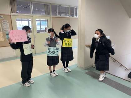 一年生の学級委員会で8:10-20で挨拶運動を行なっています。他学年の先生が「今年の一年生は挨拶よくできるね!」と言ってくれました!