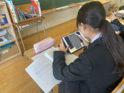 河口湖移動教室の事前学習を行いました。みんなタブレットと図書室の本を使って考えていました。
