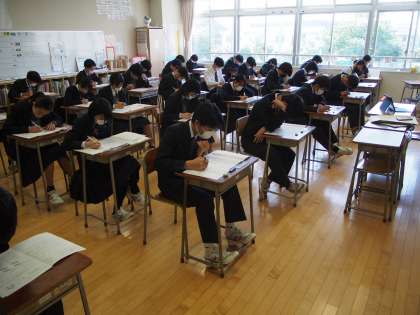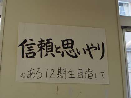 中間考査2日目、最終日です。信頼と思いやりをめざす12期生は、もちろん後輩に信頼される集中力で取り組んでいます。【菅野】