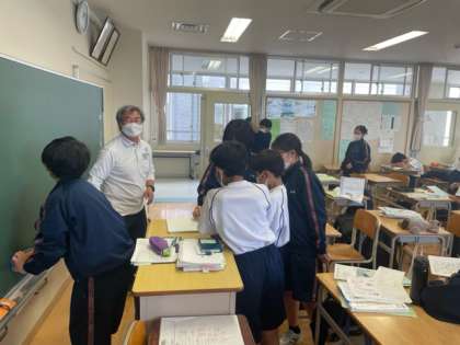 休み時間 公開日 2023/05/25 更新日 2023/05/25 できごと 山地先生が次の授業の準備のために教室に入るとすぐに生徒が集まってきました。さすがの人気ぶりです! (石塚) いいね(0) 学校生活