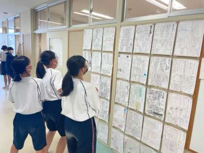 一年生の昼休みには河口湖の新聞を眺める生徒たちの姿が見られます。 (石塚)