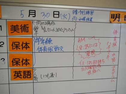 今日は運動会予行です。天気はお祈りの効果?もありなんとかもちそうです。