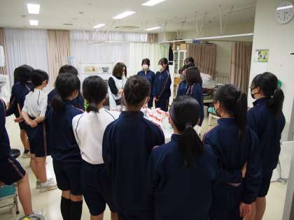 保健室では保健・給食委員会が終わろうとしているところにそっとカメラを向けると、ちゃんとポーズもとってくれました。【菅野】
