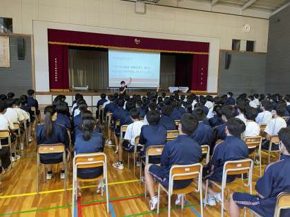 本日、5時間目に3年生は修学旅行説明会を体育館で行いました。