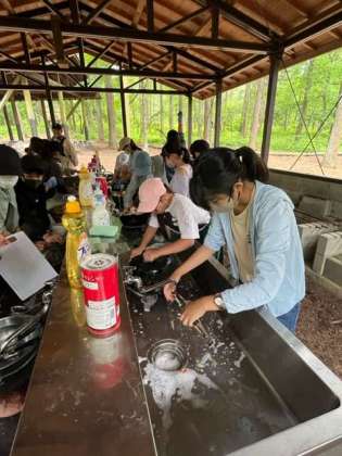 ?食事後は指示される前にすぐ片付けに入っています。14期生は立派な先輩になれる素質十分です。