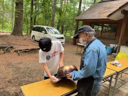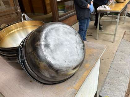 ?お鍋やボール、ざるなど返すにあたりかなり厳しいとチェックが入ります。一番下のお鍋は合格ラインの鍋底です!