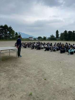開校式を行いました。残念ながら富士山が…雲に隠れています。