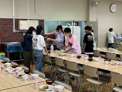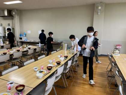今日も朝会のすぐ後に時間がない中頑張って準備に励む食事係の生徒たちです。