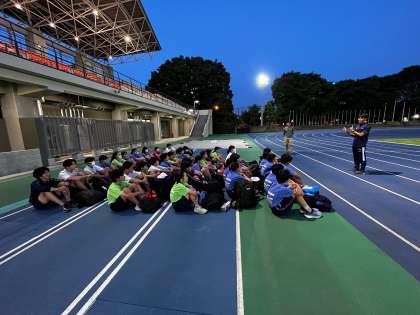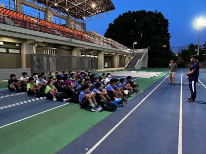 陸上競技部は部活動地域移行トライアル事業として、総合運動場で19時まで練習を行いました。
