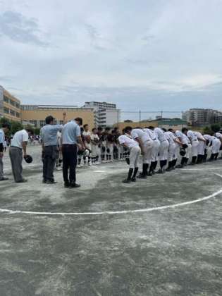 勝てば都大会に進出決定、負けたら三年生は引退という大一番の試合。三年生の先生方も応援にかけつけてくれていました。