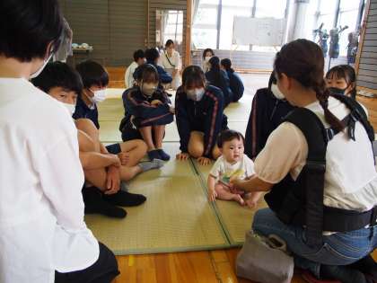 そしてついに本物の赤ちゃんの登場です。みんな興味津々だけどちょっと不安!【菅野】