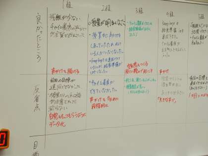 12期生の学級委員会の様子です。ホワイトボードを見ると、実に細かくクラスの様子を把握していることがわかりました。さすが3年生。【菅野】