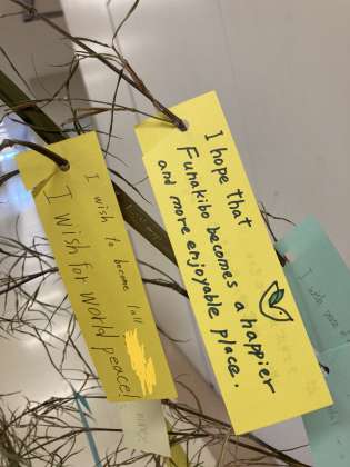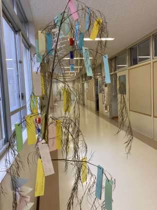 写真に写っているのは笹を飾ってくださった主事さんが書いてくれたとてもステキな願い事です 意味分かりますか?