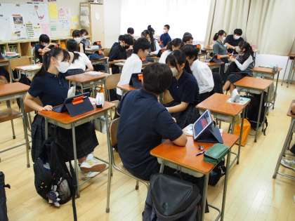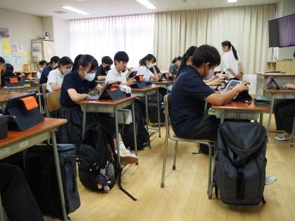 昨日の道徳授業の様子です。駒沢大学の講師をしている鴨井雅芳先生をお迎えし、道徳授業地区公開講座を行いました。13期生はいじめを題材にした映像を見て「変えられる?クラスの空気」について考え話合いました。【菅野】