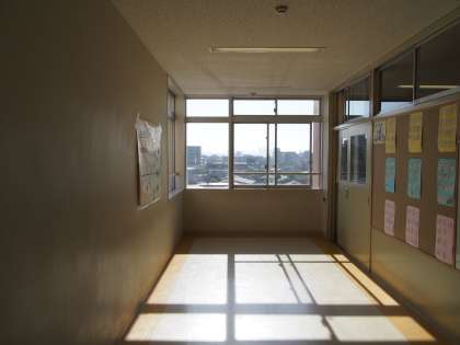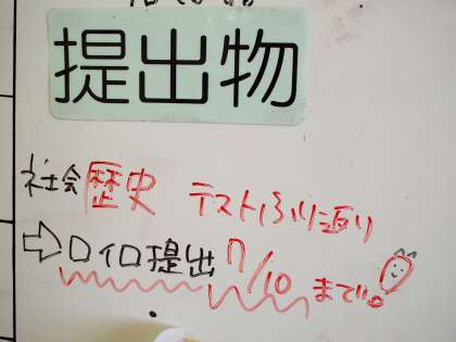 梅雨明けまじか?の朝陽がまぶしいフナキボ4階の校舎です。充電も、夏休み前の提出物も忘れている人はいませんか、という呼びかけです。