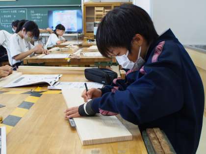 けがき作業が始まると、みんな真剣そのもの。【菅野】