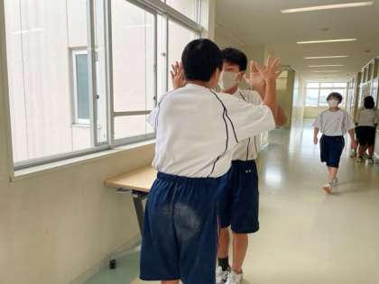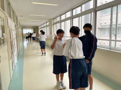 一年生フロアの廊下では男子たちの間でこの遊びがブームになっているようです。