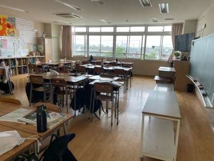 1-3の4時間目は教室移動でしたが、給食に向けて班の形にして、配膳台をセッティングしていました。素晴らしいです。誰が中心になって声をかけているのか気になりました。