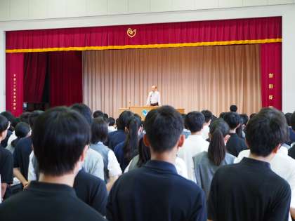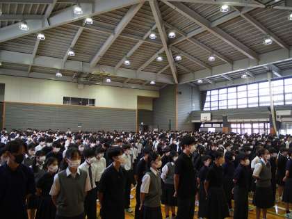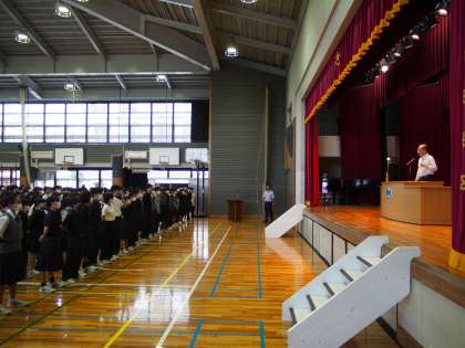 全校生徒が入った体育館は、そうとうな暑さでしたが、いつもながらの立派な態度でフナキボ生は参加していました。