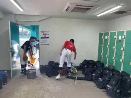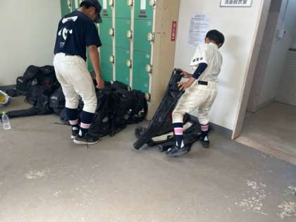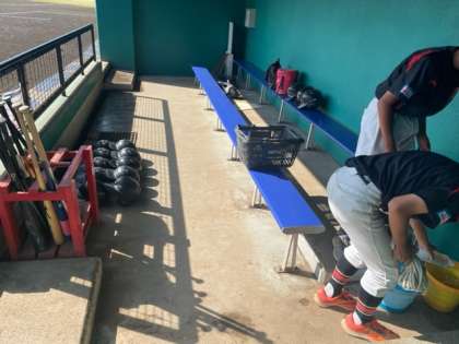 今日の3回戦に勝って準々決勝に駒を進めました。写真は試合前にベンチ作りをしてくれているメンバー外の選手たちです。素晴らしいサポートあっての結果です!