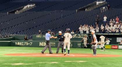 野球部の活動はオフですが顧問の2人は関東大会決勝の審判、運営に来ています。どこにいるか分かりますか?