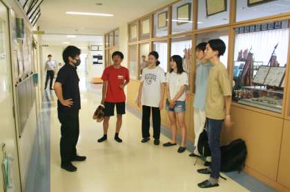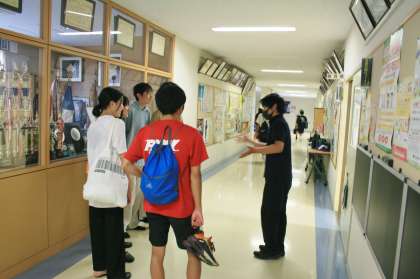 夏休みの後半が始まった今週は、夏休み中の卒業生も学校を訪ねてきます。今日も廊下でフナキボの先生と‘自然に’会話しているところをカシャ!先生たちもそろそろ新学期の準備に取りかかっています。【菅野】