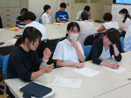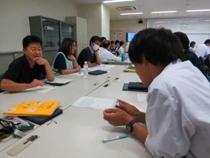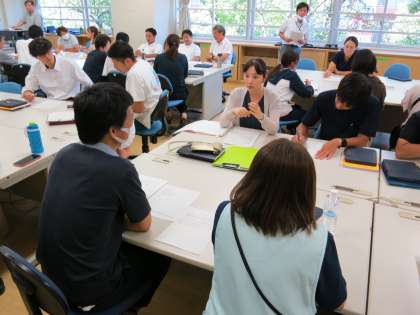 研修の後半はグループでミィーテングを行いました。こういう時でも、フナキボは生徒のみならず、先生たちも実に積極的です。講師の先生もフナキボの先生方の姿勢を絶賛してくださいました。【菅野】